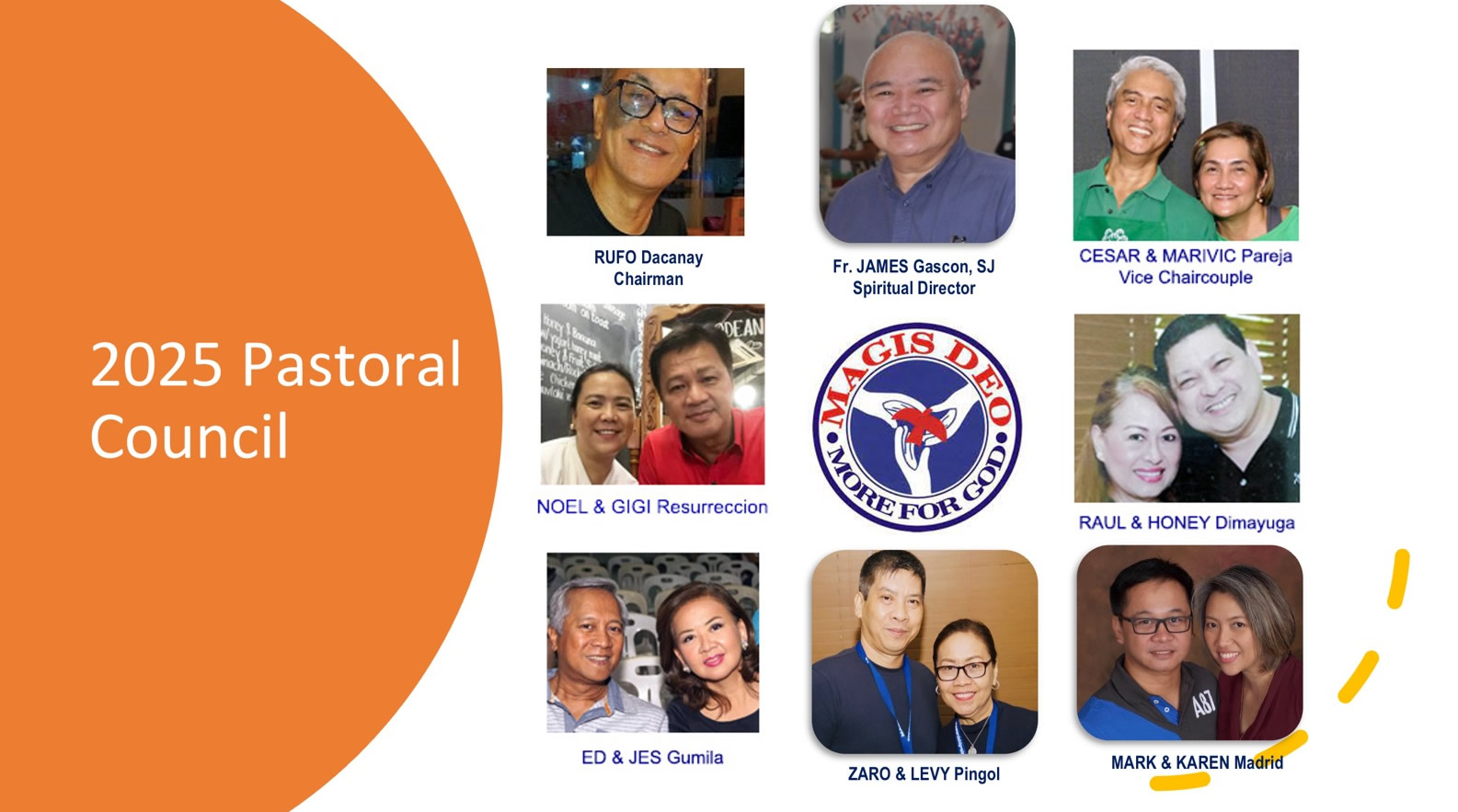 Today, Magis Deo is led by our Spiritual Director, Fr. James Gascon, S.J. Our Pastoral Council is composed of Magis Deo members who are elected through an annual cycle.